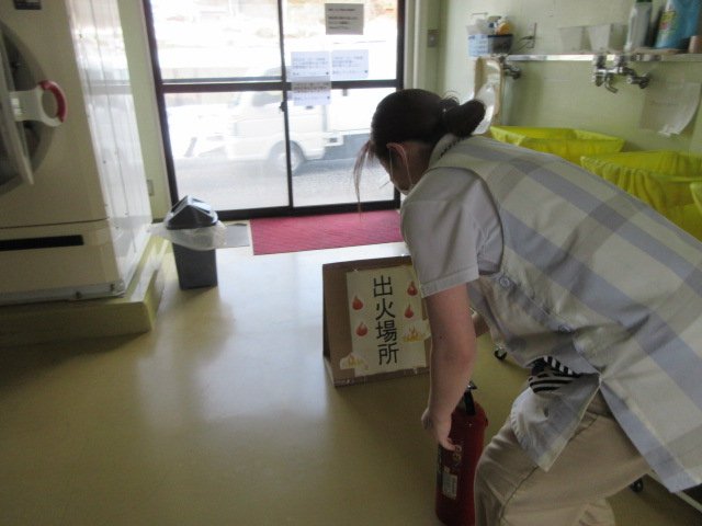 洗濯室からの出火だったので正面玄関に避難しました。 地域協力員役の職員も駆けつけ迅速に避難できました。